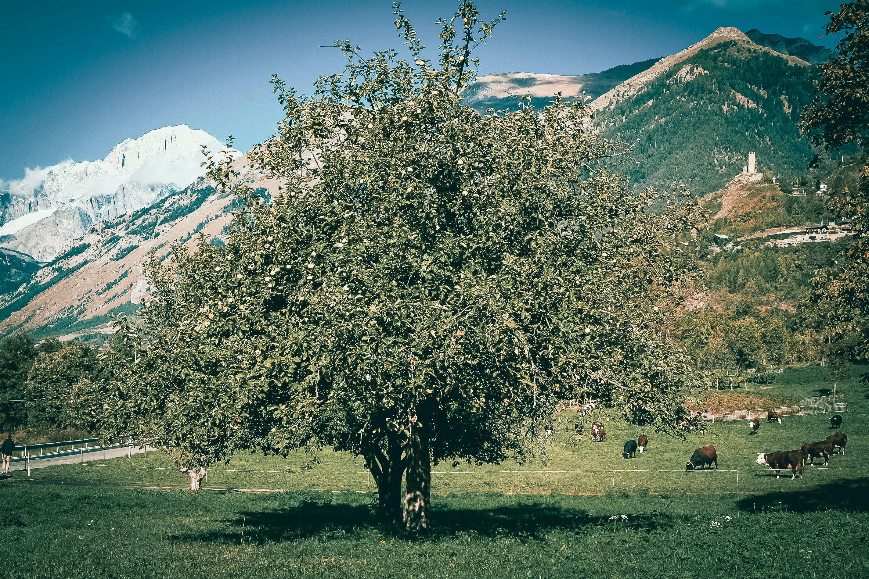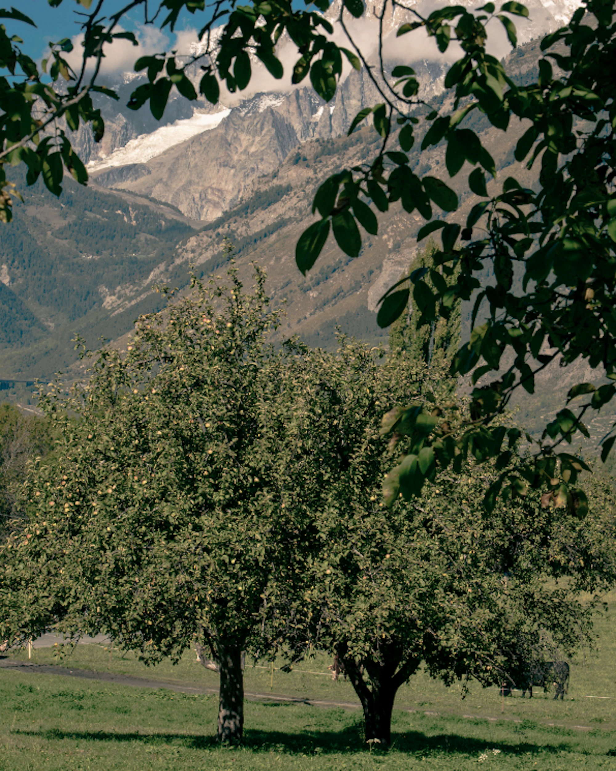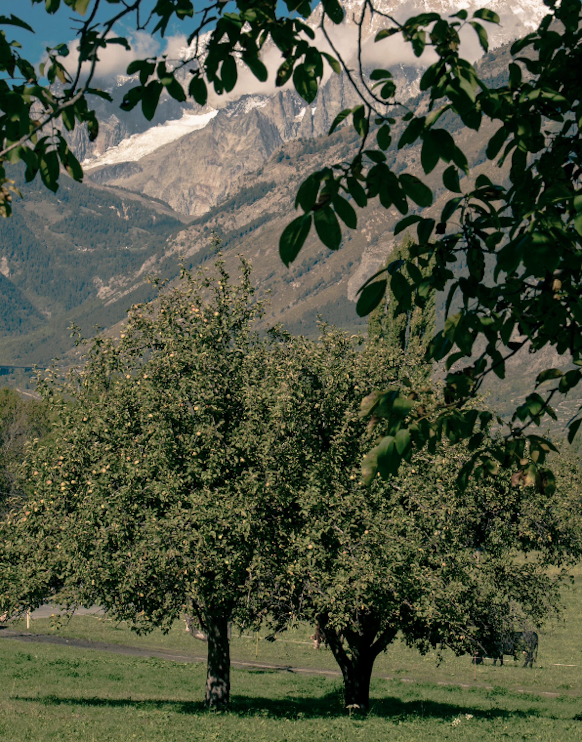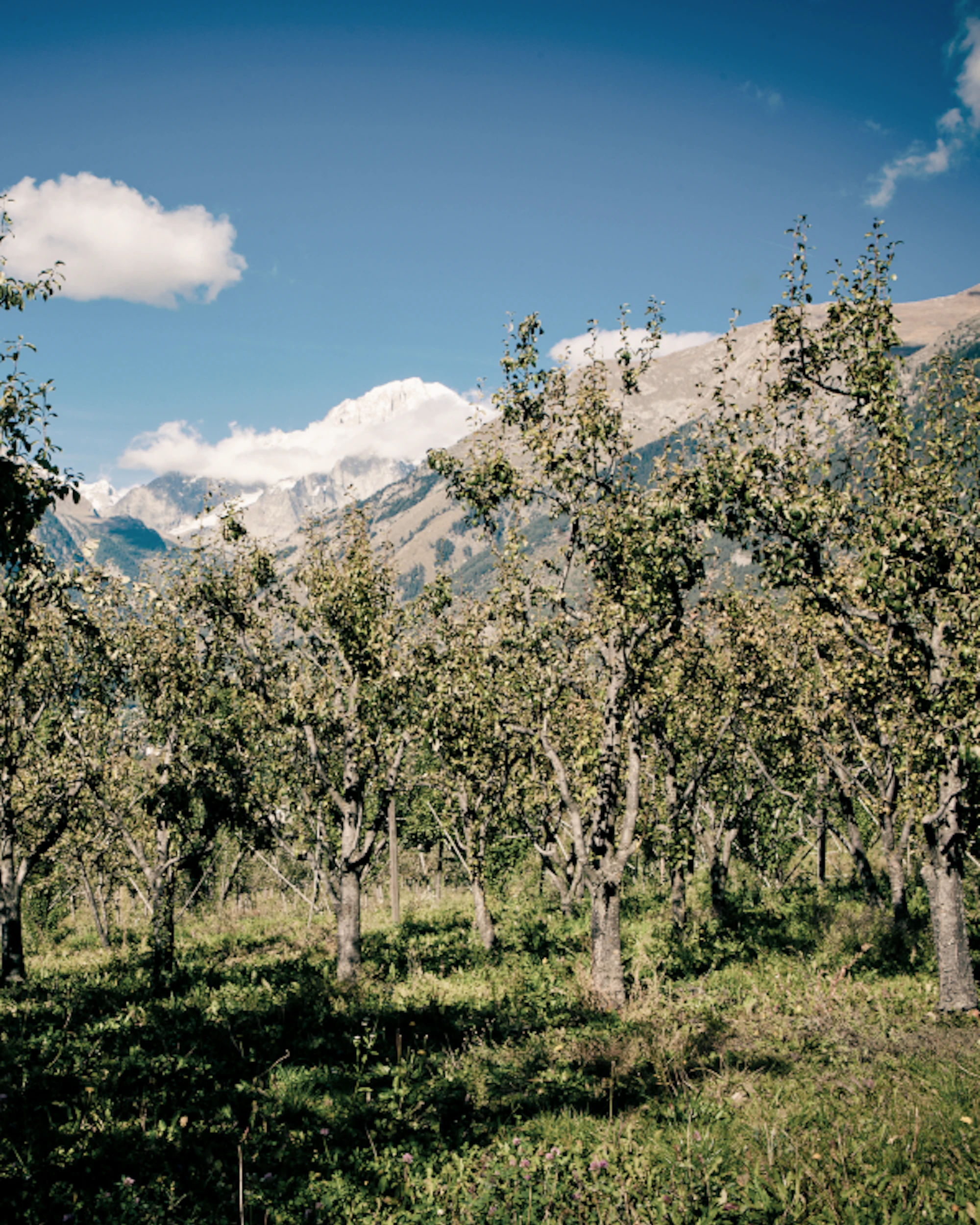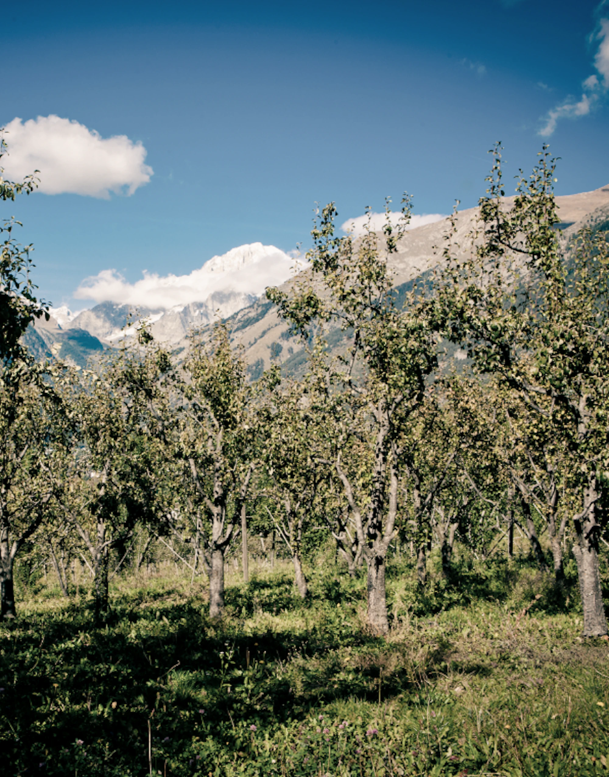 Between the granite ramparts of Mont Blanc, the walls of the Cervino-Matterhorn and the glaciers of Monte Rosa, an alpine amphitheatre opens up where the vine must surrender and the heroic apple tree takes the baton.